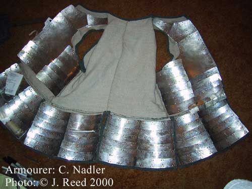 I think it is all hand stitched including the waist. Craig can correct me if I am in error.  Yep. It seems to hold the weight of all the plates quite nicely. These are just babee pix. I think it has all of it's plates now. I need to get some updated pix from Craig. We can also post the specs of the current one. I think the only thing that is holding off completion is the nails. Jenn -------------------- ad finem fidelis