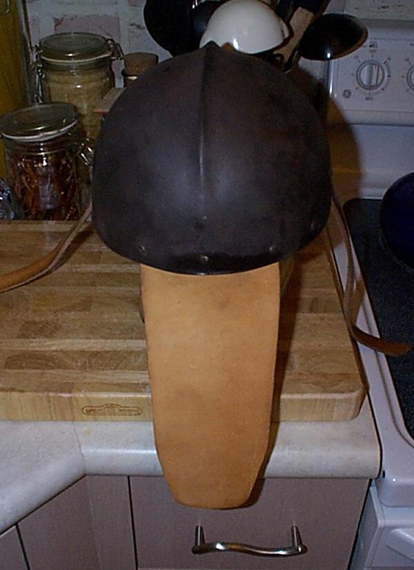 hey,well i worked on the helmet last weekend. i got an event coming up this weekend and the next which i'm trying to have it ready for. i went ahead and made the cut outs on the side and attached a leather suspension for the liner, chin strap, and oxtail. i didn't use raised rivet heads going for simple munitons. i'll probably start the liner today after class but will probably afix the buckles and oxtail instead. i may not have the rondels finished by this weekend but will plan to have it by the next. i'll get some pics up as soon as i e-mail them to Jenn and by her grace she hosts them. quick question on the standard. would the use of expansion rings be warranted? i'm working on an improved model using riveted maille, 3/8" ID, which will have period buckles and maybe a liner; i'll have to get more feedback from you on the construction of the liner. i.e. attaching method, how much padding, is it quilted, etc. if you have a picture of one it would be great. have fun, daniel -------------------- Db D'rustynail