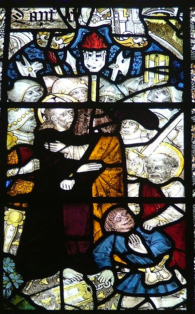 http://www.norfolkchurches.co.uk/eastharling/images/Dscf6454.jpg I noticed the above whilst browsing through a website on Norfolk churches. The guy on the left of the window has what looks like lamellar or scale armour with large rivets and either leather or metal plates overlapping. I've seen greco-roman illustraions of similar armours, but was unaware of it's use into the 15th C, especially England?? Any thoughts?
