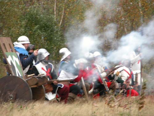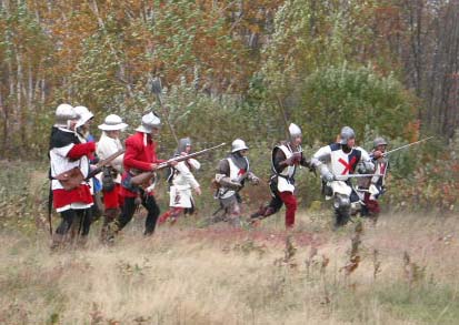A few photos from the event:Some of our new friends pose for a group picture. Lining up for Action: Bob and Bernard skirmish The Captain is wounded! More action:
