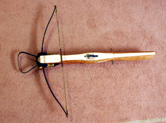 Hi All,We have been looking for a decent arbalest, at a reasonable price for a number of years, that met Wolfe Argents Standards, and needless to say, we have gone without a representation of a crossbow for years, due to one or two of our requirements being off. For instance, there was a fellow in Canada, from Poland originally, who made fantastic later Renaissance crossbows, but his bows were definitely later Renaissance, and he used metal nuts for the trigger action exclusively, and decorated his staves as a rule with lovely etching. In the past several years, European sources that once were possibilities priced us out of the potential market with the weakening of the US dollar.